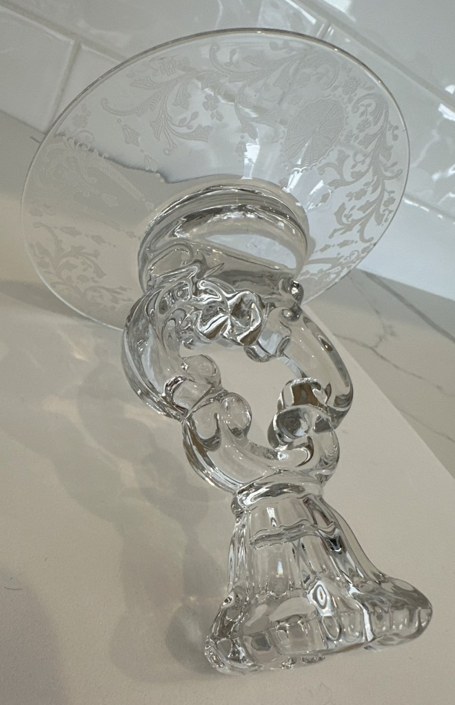 Cambridge Glass Keyhole Candlestick in the Diane Pattern.