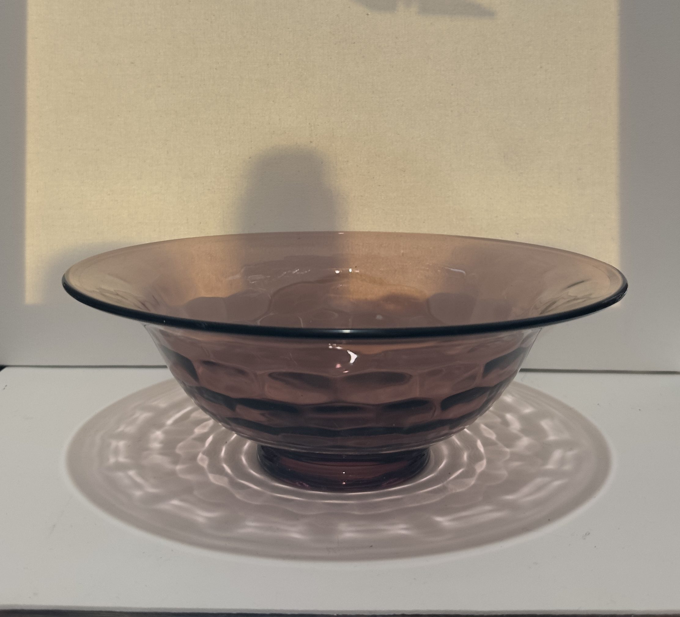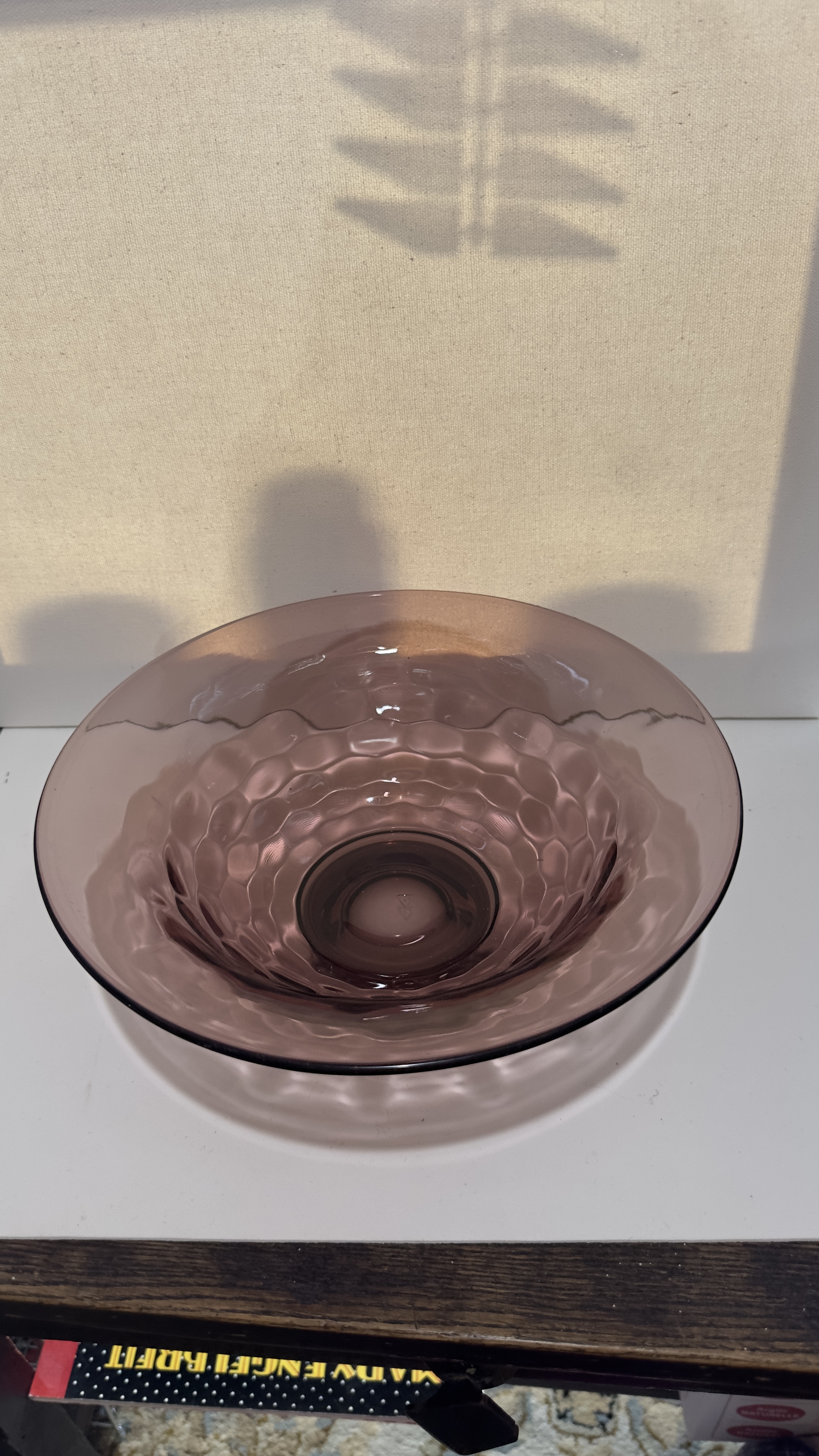 Purple glass Cambridge bowl in the Honeycomb pattern. Signed with the Cambridge C in the triangle.