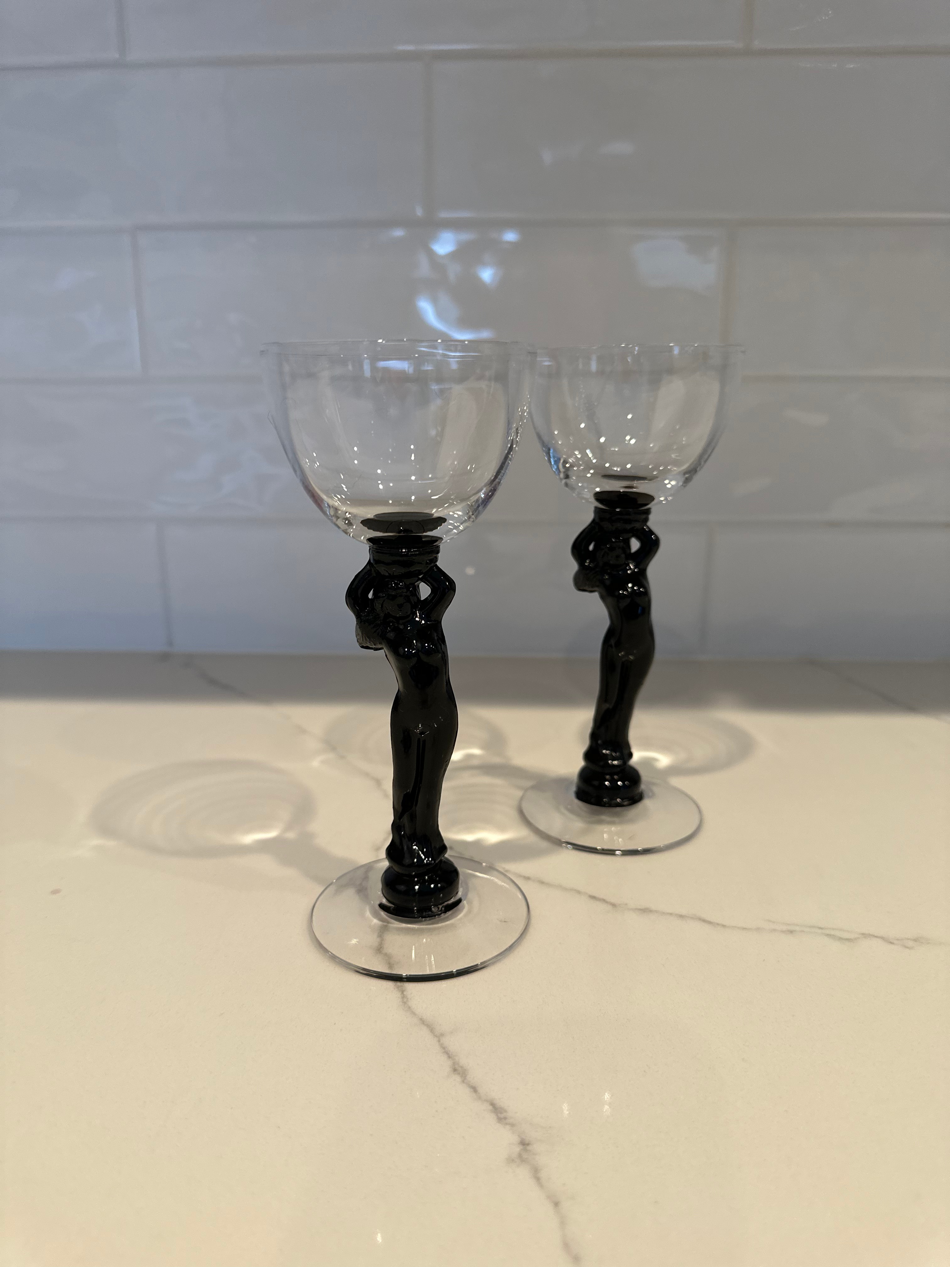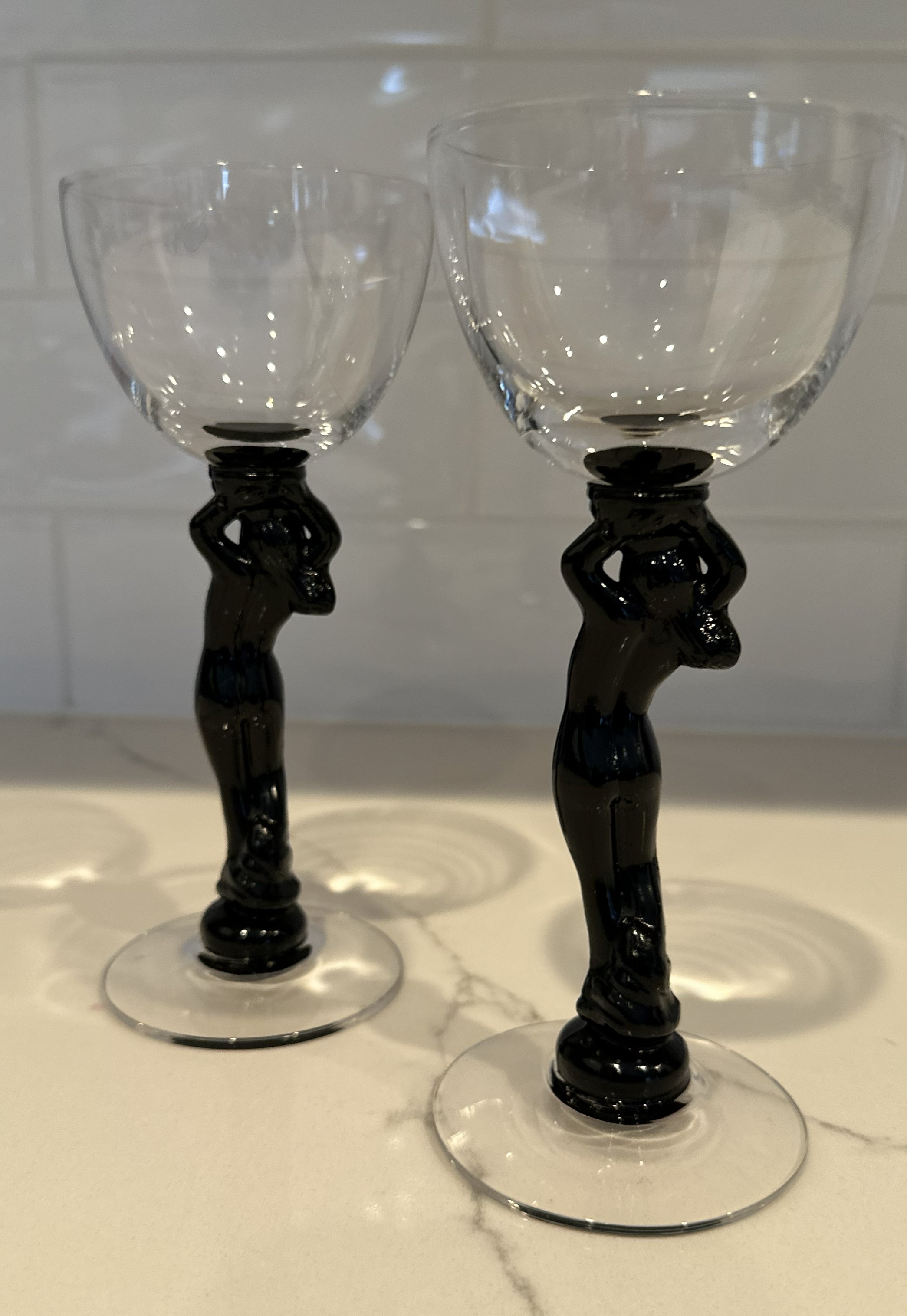 Cambridge Statuesque Nude Ebony Black Stem Wine Claret Glass stems.