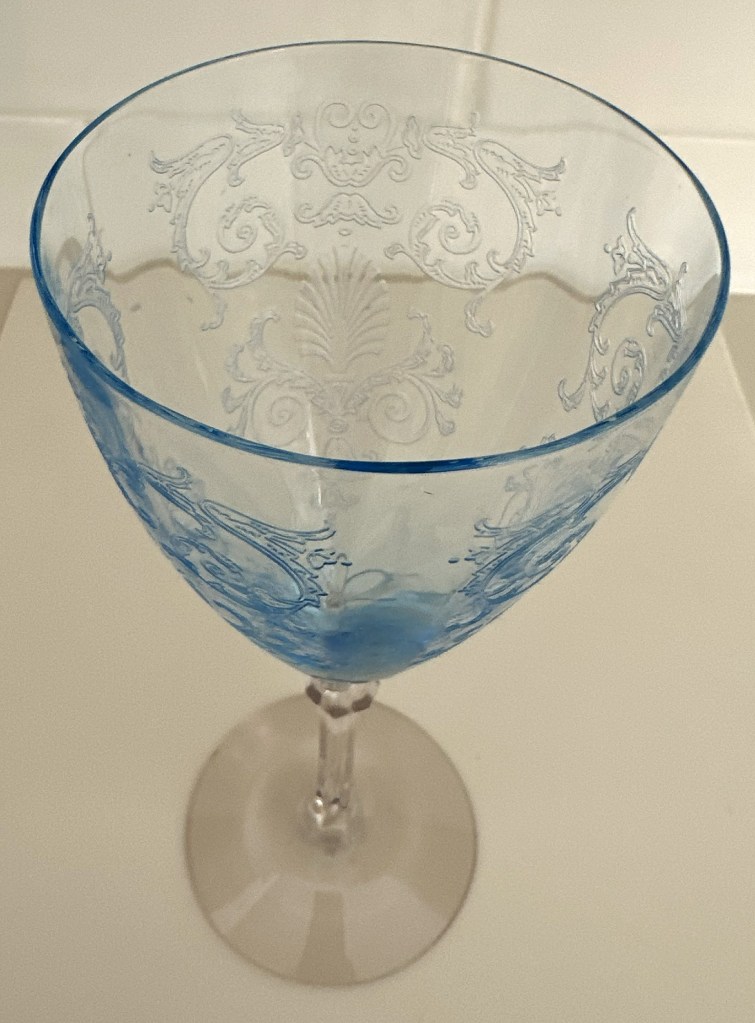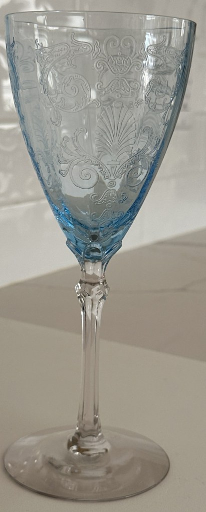 Fostoria Azure Blue Versailles Water Goblet Stem-5098, Etch-278.