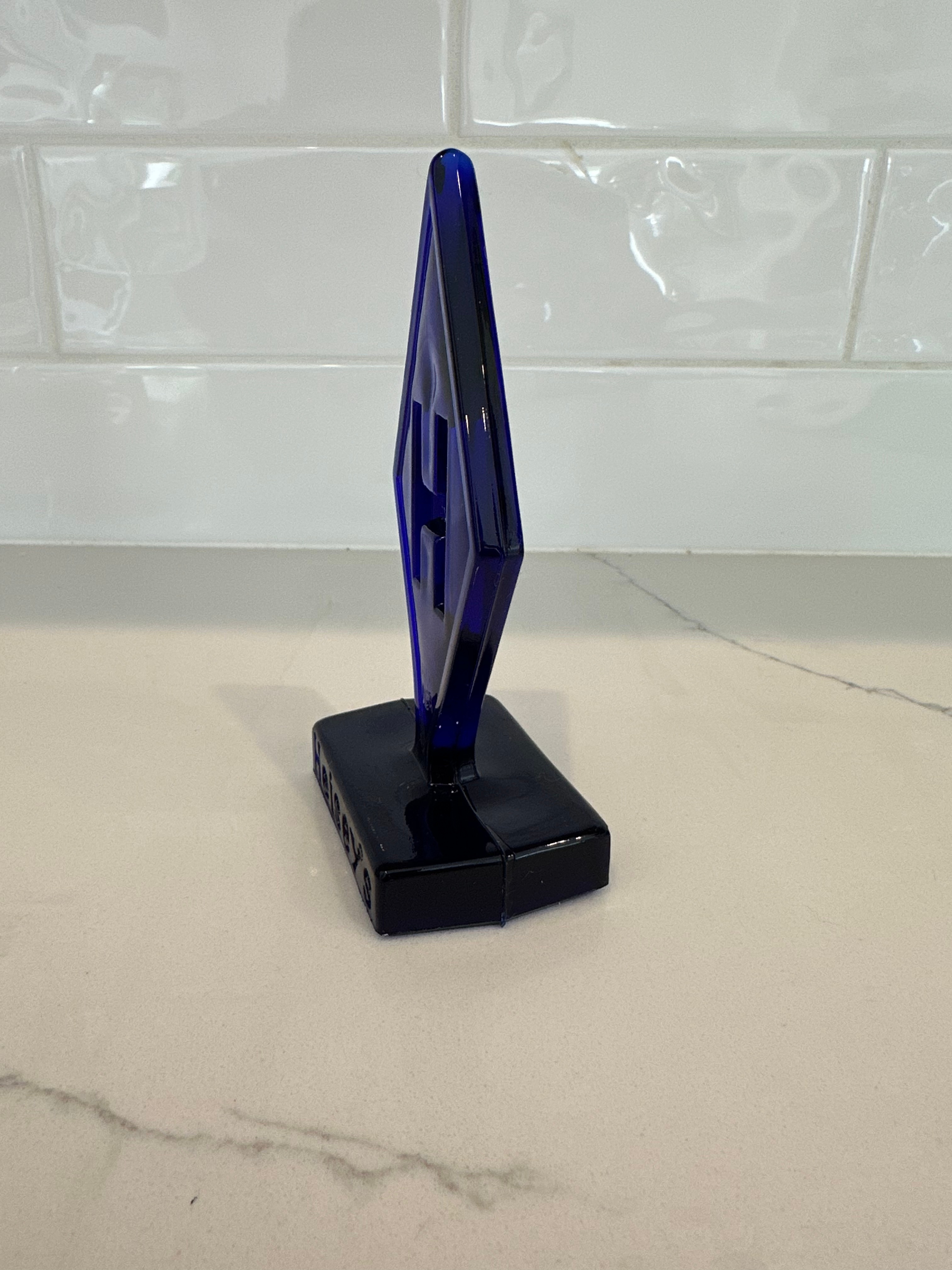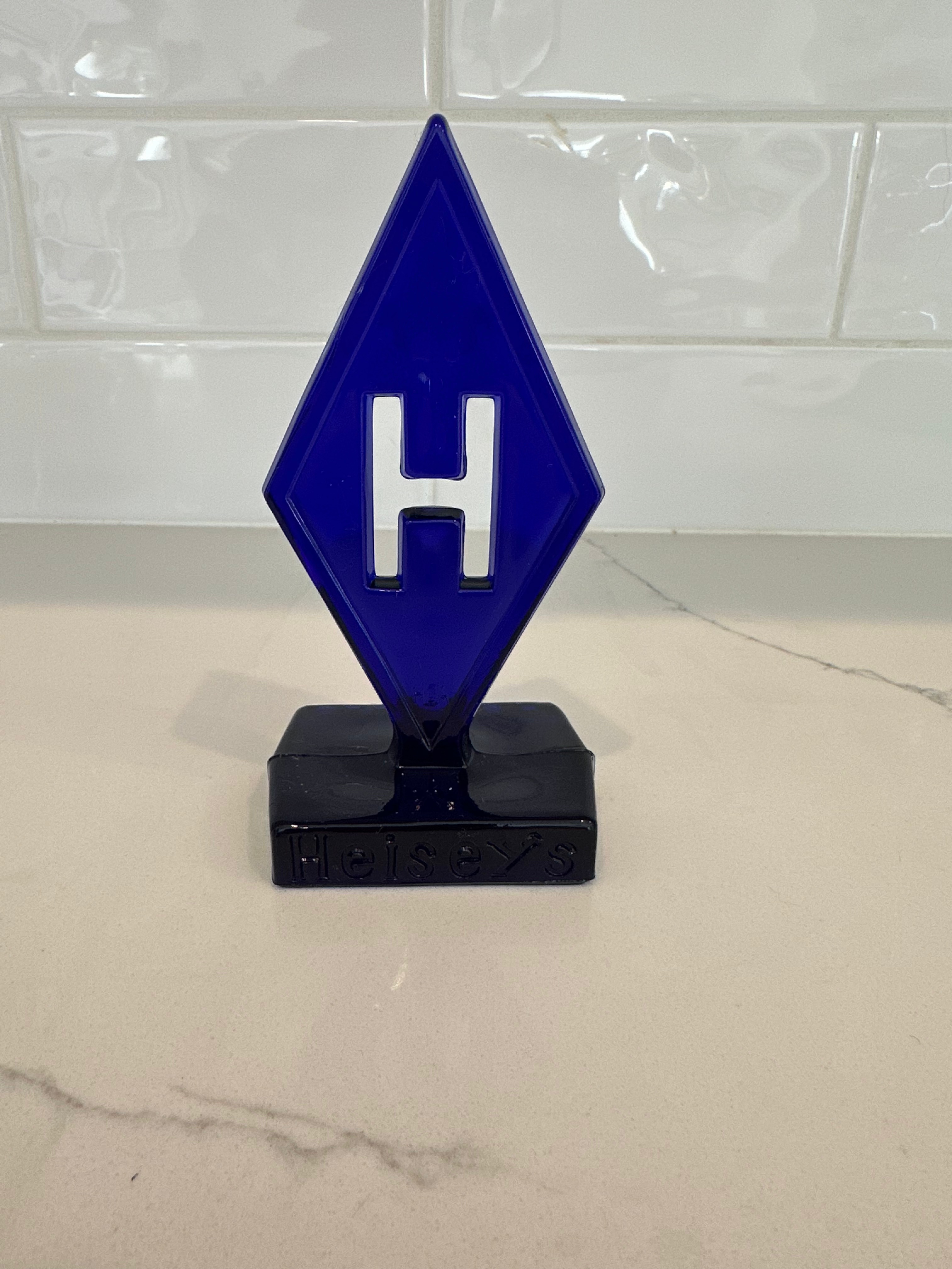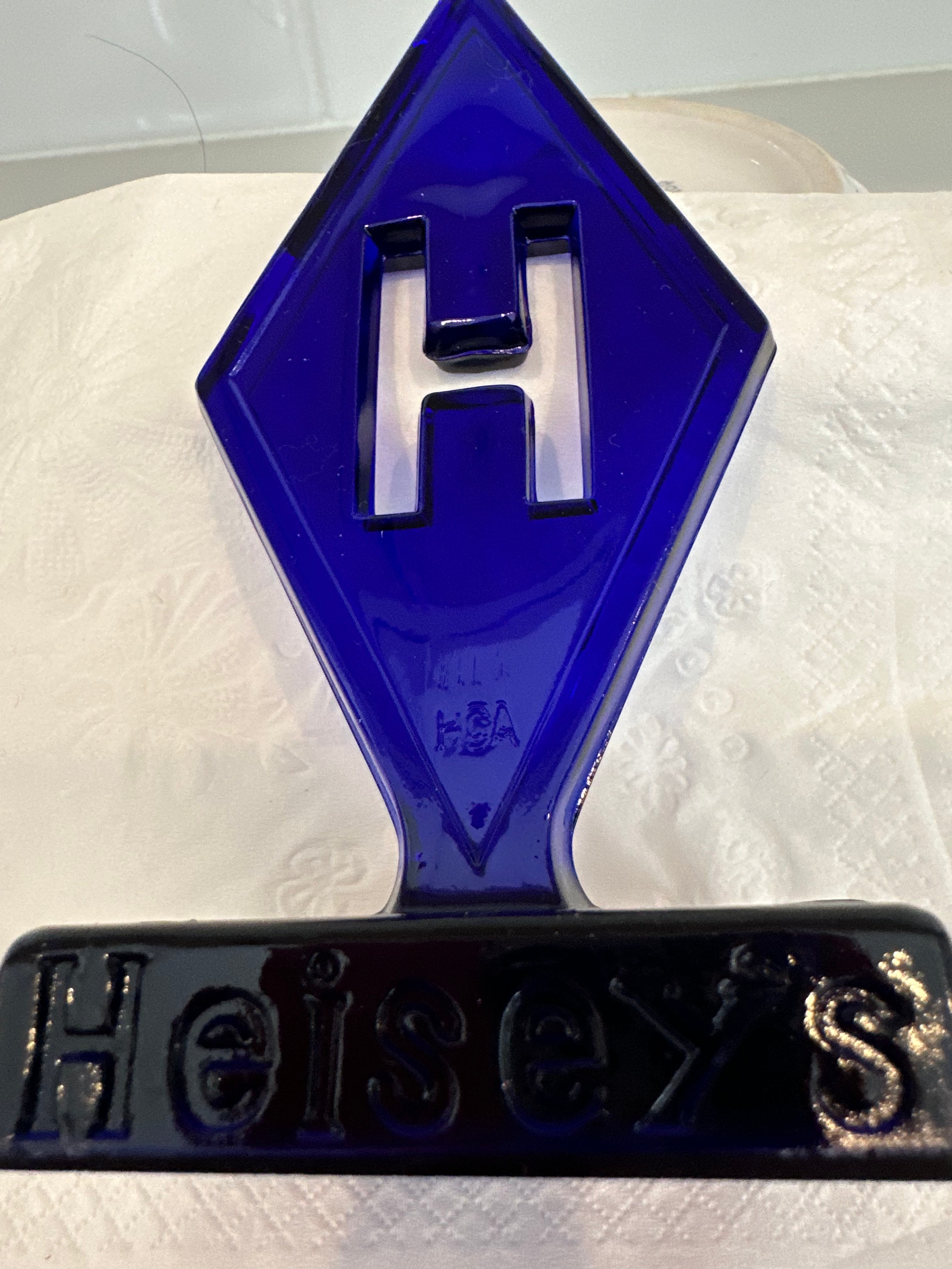 Vintage Heisey Glass advertising plaque with embossed Logo.