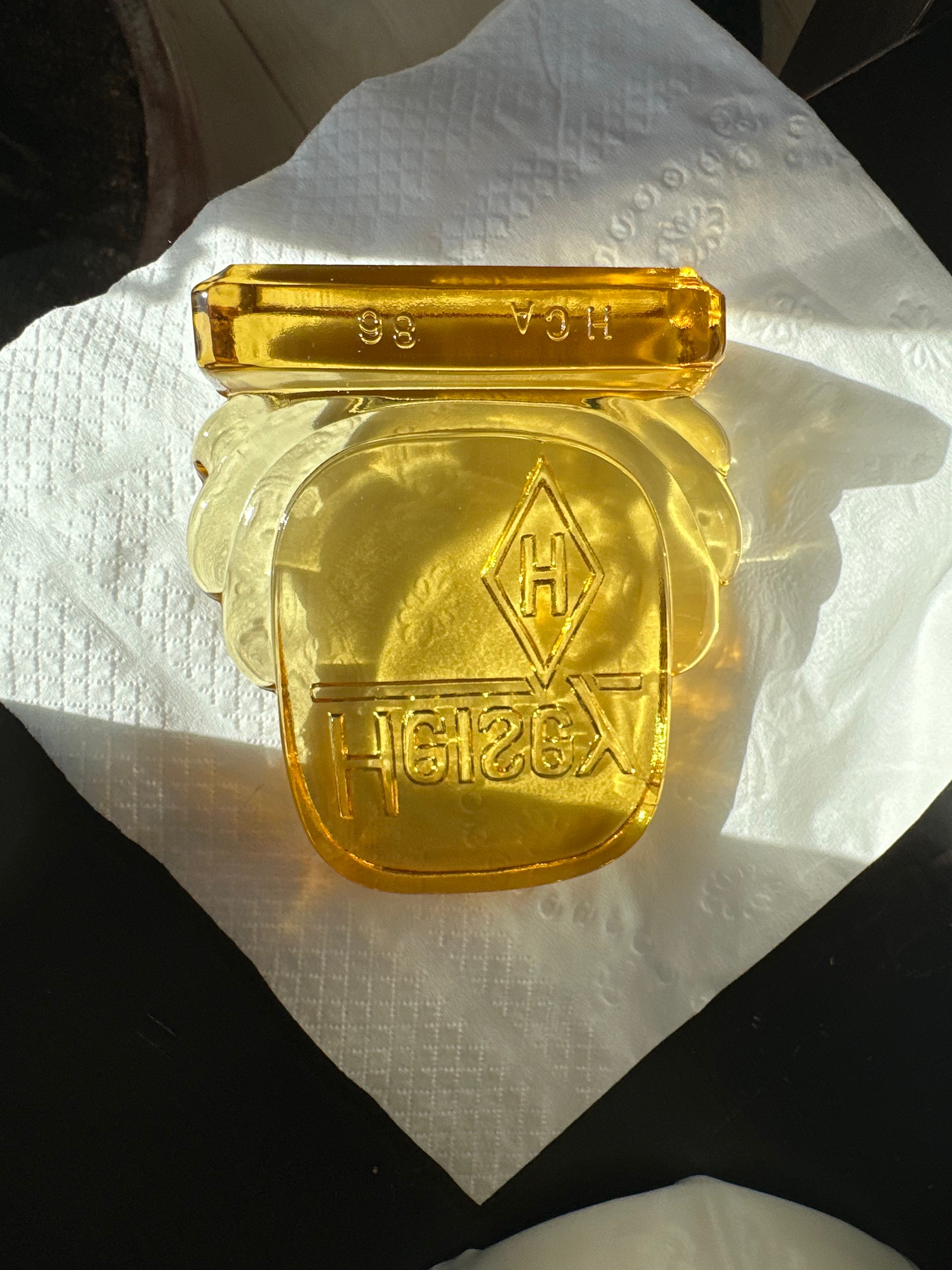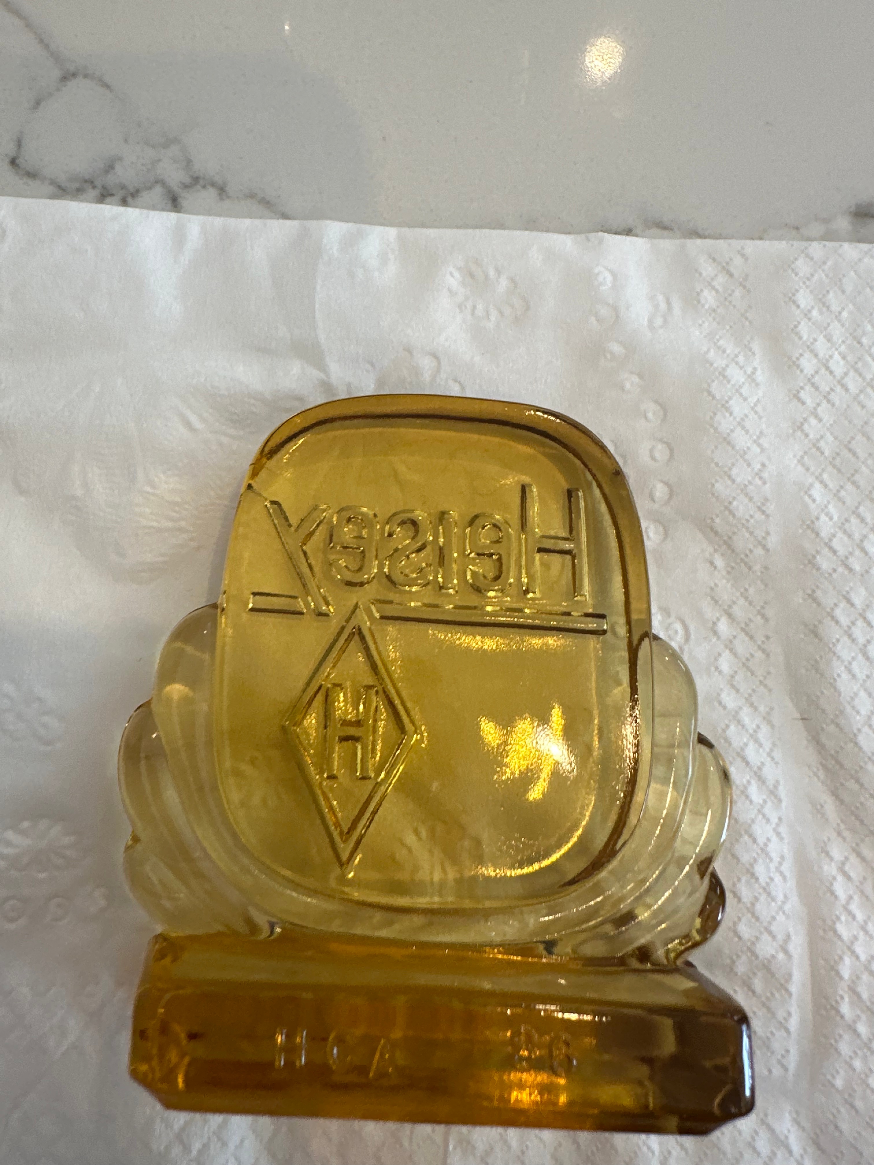 Vintage Heisey Glass advertising plaque with embossed Logo.