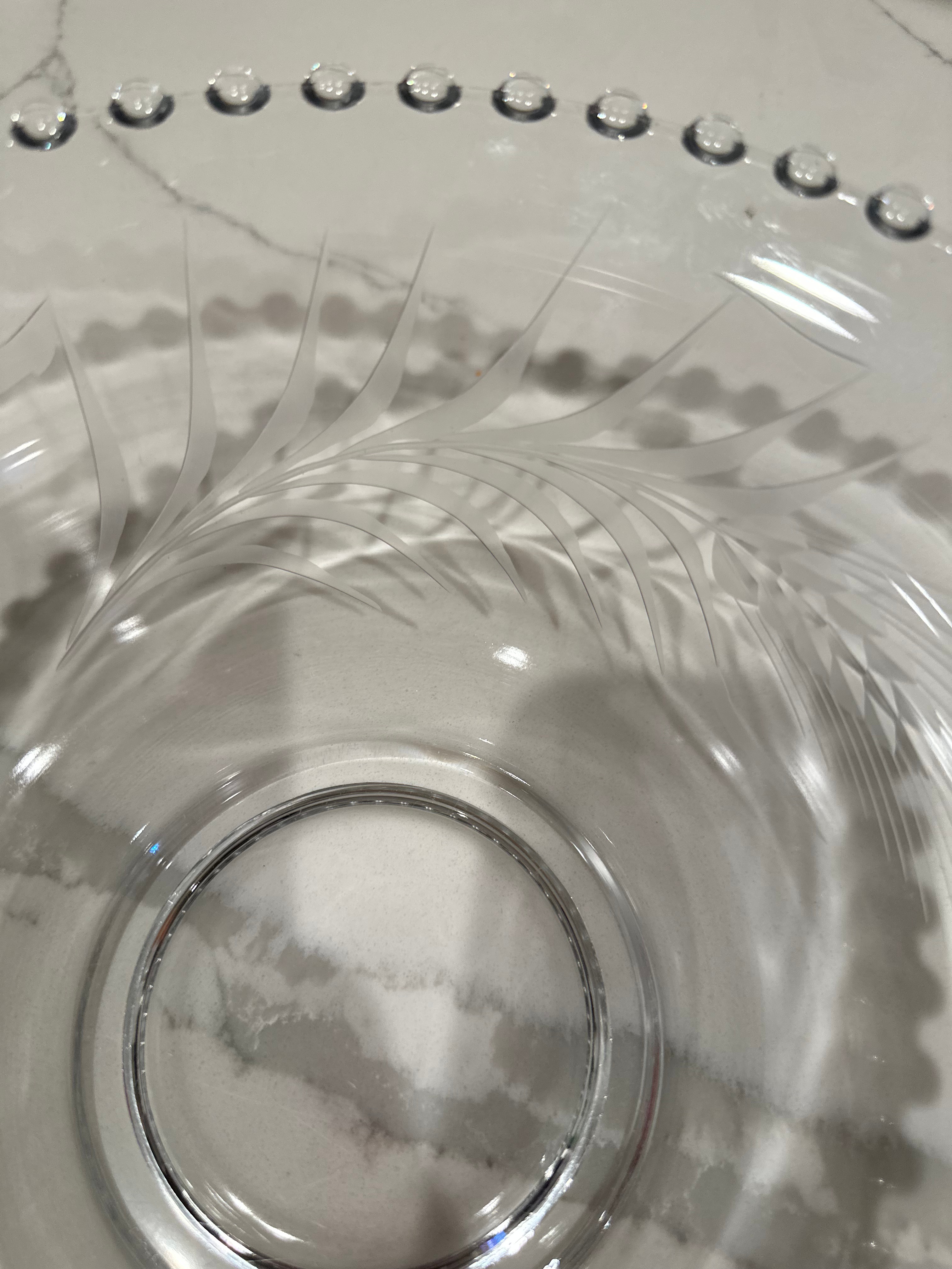 In excellent condition, with no chips, cracks, or damage. Beautiful crystal clear glass with the delicate wheat pattern.